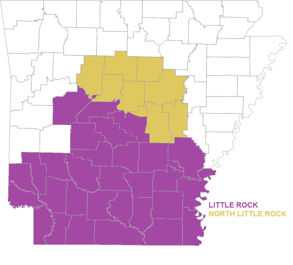 Counties Served: Arkansas, Ashley, Bradley, Calhoun, Chicot, Clark, Cleburne, Cleveland, Columbia, Conway, Dallas, Desha, Drew, Faulkner, Garland, Grant, Hempstead, Hot Spring, Howard, Jefferson, Lafayette, Lincoln, Little River, Lonoke, Miller, Nevada, Ouachita, Perry, Pike, Pope, Prairie, Pulaski, Saline, Sevier, Union, Van Buren, White, Yell